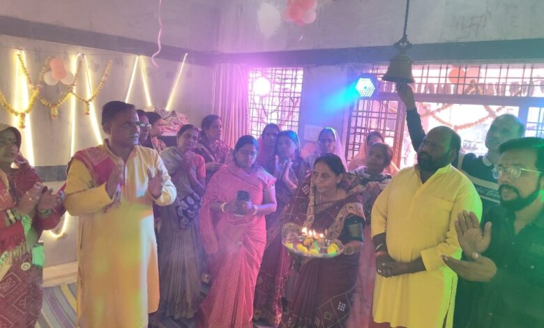 वैदिक मंत्रोच्चार के साथ में पंडित आयुष जोशी एवं मंदिर पुजारी पंडित अनिल शर्मा के सानिध्य में पूजन, हवन का लाभ यजमान के रूप में पंडित अमित द्विवेदी ने लिया।