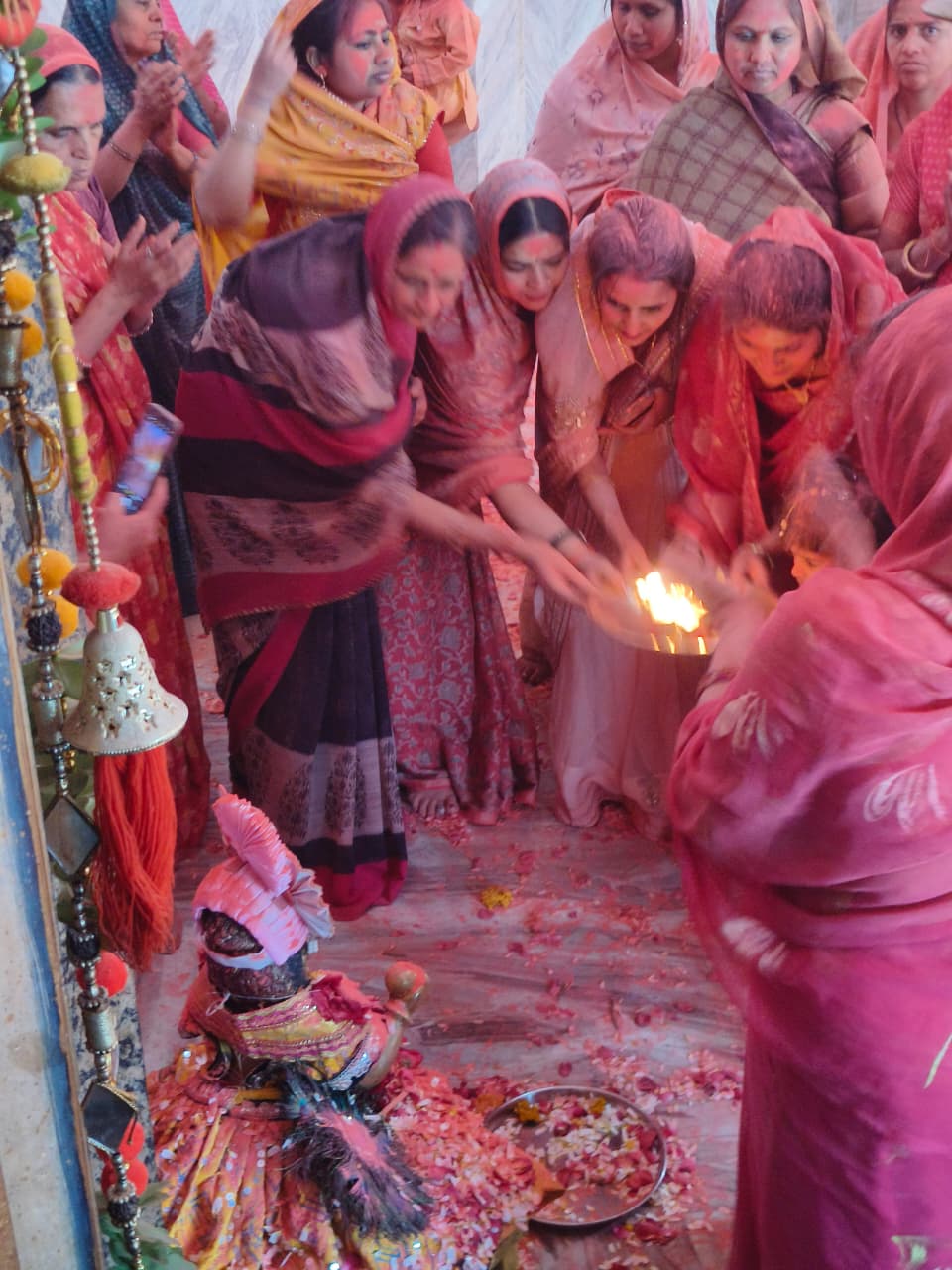 नगर की माताओं और बहनें द्वारा श्री बांके बिहारी जी को क्रम बद्ध बारी बारी से झूला झुलाकर,गुलाल लगाकर ओर फूलों की बरसात कर होली खेली गई ।