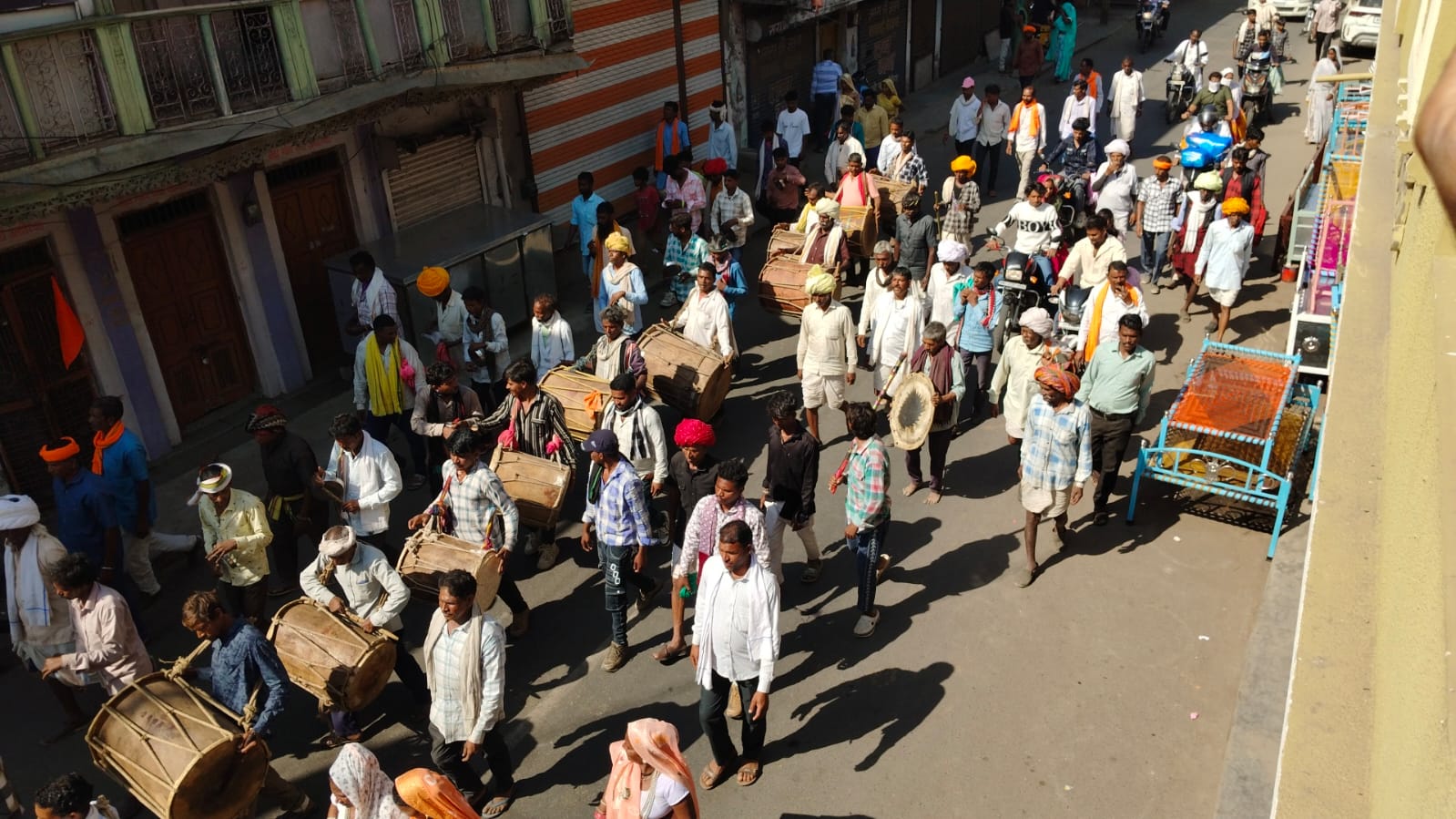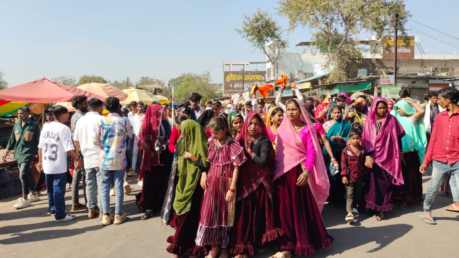 भगोरिया हाट बाजार जमकर थिरके युवक युवतियां।ढोल मादल की थाप पर एवं थाली की खनक पर। उत्साह उमंग उल्लास के साथ मनाया गया। भगोरिया पर्व युवक युवतियां पारंपरिक वेशभूषा में नजर आए। युवतियां बाजार में चश्मे की खरीदारी करती हुई दिखाई दी। गर्मी को देखते हुए ठंडी चीजों का अधिक बिक्री हुई । दोपहर बाद भगोरिया हाट बाजार में भीड़ बढ़ती गई। ढोल एवं थाली की गूंज से गूंज उठा गांव ढोल की मधुर आवाज पर हर कोई थिरकन के लिए तैयार हुए। ग्राम पंचायत द्वारा दूर-दराज से आए हुए ग्रामीणों के लिए छांव के टेंट व्यवस्था एवं पानी की व्यवस्था की गई । दोपहर बाद बीजेपी कार्यकर्ताओं एवं सामाजिक संगठन जयस के बैनर तले दोनों अलग गेर निकाली गई इस बार ढोल की संख्या काफी अधिक थी।