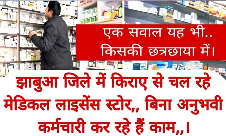 झाबुआ जिले में कई मेडिकलों की गिनती नहीं जो। दूसरों के मतलब किराये के लाइसेंस पर चल रहे हैं। और उनके कर्मचारी जो कि बिना अनुभव पर ही कम वेतन पर काम पर रख लिए जाते हैं। और कई मेडिकल तो सिर्फ कर्मचारियों के भरोसे ही संचालित कर छोड़ दिए जा रहे हैं।
