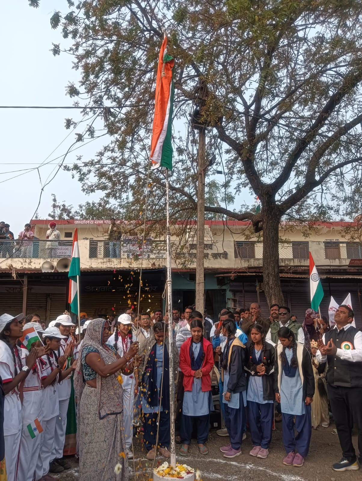 उप तहसील कार्यालय पर नायब तहसीलदार अंकिता भिड़े, हाई स्कूल पर प्राचार्य नितिन परमार, प्राथमिक स्वास्थ्य केंद्र पर डॉक्टर सुरेश कटारा, पुलिस चौकी पर चौकी प्रभारी दीपक देवरे, एम पी ई बी कार्यालय पर जे ई मोहनिया साथ ही नगर के शासकीय एवं प्राइवेट स्कूलों पर ध्वज फहराया गया