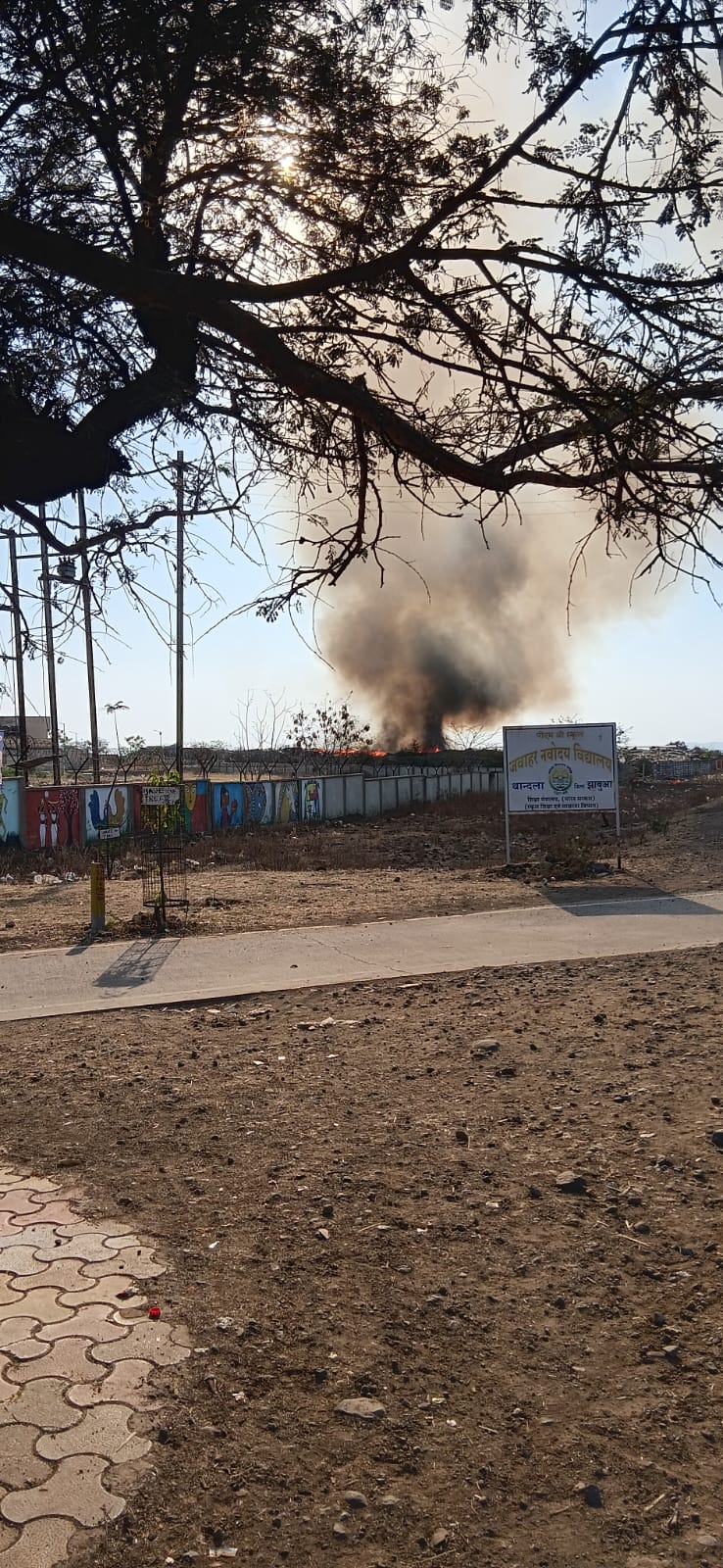 झाबुआ जिले के थांदला विकासखंड स्थित जवाहर नवोदय विद्यालय में बुधवार देर रात उस समय हड़कंप मच गया, जब विद्यालय के समीप टचिंग ग्राउंड में अचानक आग लग गई। आग से उठे जहरीले धुएं ने देखते ही देखते पूरे परिसर को अपनी चपेट में ले लिया, जिससे स्कूल में मौजूद बच्चों और स्टाफ के बीच अफरा-तफरी मच गई।