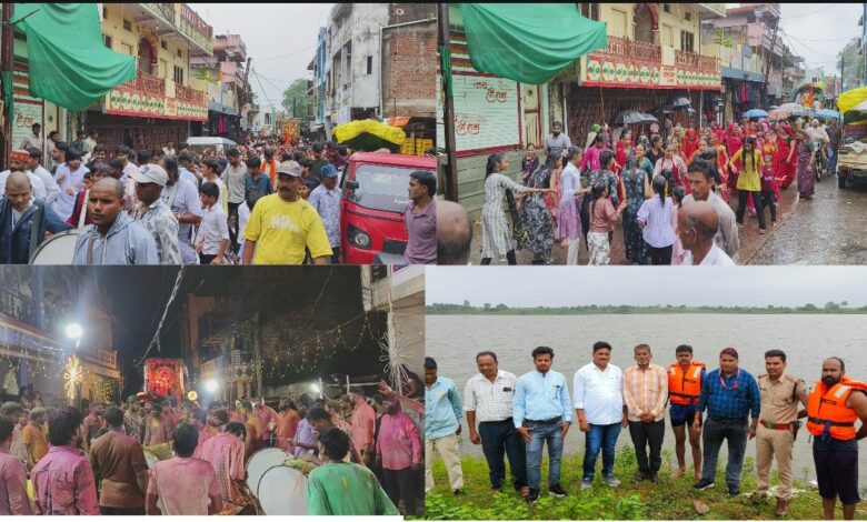 अनंत चतुर्थी से एक दिन पहले शुक्रवार शाम को नीम चौक मित्र मंडल द्वारा भव्य गणेश विसर्जन शोभायात्रा निकाली गई। गिरती बारिश के बावजूद श्रद्धालुओं का उत्साह चरम पर रहा। गुलाल उड़ाते हुए, “गणपति बप्पा मोरिया” के जयकारों के बीच भक्त नाचते-गाते चल रहे थे। ढोल ताशे की थाप पर युवक-युवतियां थिरकते नजर आए।
