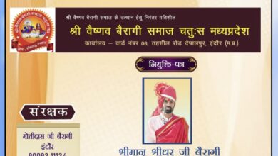 वैष्णव बैरागी चतु संप्रदाय का युवा प्रदेश उपाध्यक्ष बने पं. श्रीधर बैरागी…