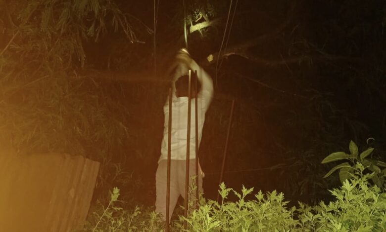 तेज बारिश और अंधेरी रात में, इन कर्मचारियों ने गिरे हुए पेड़ को काटकर हटाया और टूटे तार जोड़कर रात्रि 3 बजे तक बिजली को सुचारू रूप से चालू कर दिया।