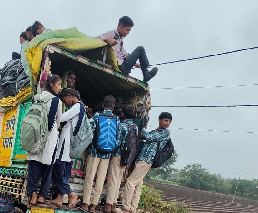 झाबुआ जिले के खवासा क्षेत्र से बच्चों की सुरक्षा को लेकर एक बेहद चिंताजनक तस्वीर सामने आई है। यहां स्कूली बच्चों की जिंदगी पूरी तरह भगवान भरोसे नजर आ रही है। ग्रामीण इलाकों से रोजाना दर्जनों मासूम बच्चे बिना किसी सुरक्षा व्यवस्था के लोडिंग वाहनों और बसों की छतों पर सफर करने को मजबूर हैं।