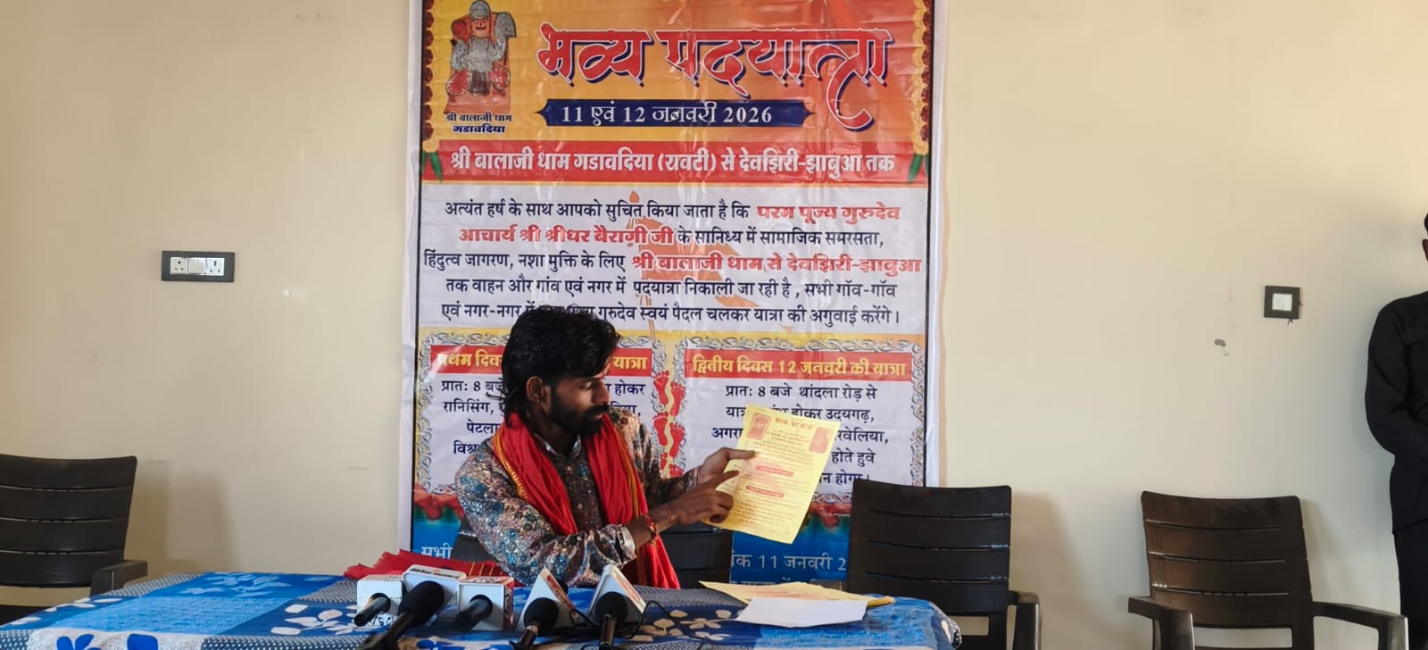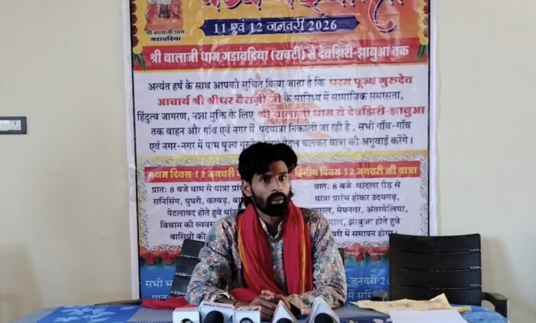 हिंदू एकजुटता और गौ सेवा के संकल्प के साथ गड़ावदिया धाम से निकलेगी दो दिवसीय पद सह वाहन यात्रा,,पत्रकारो से चर्चा करते हुए पीठाधीश्वर श्रीधर बैरागी ने दी जानकारी..!