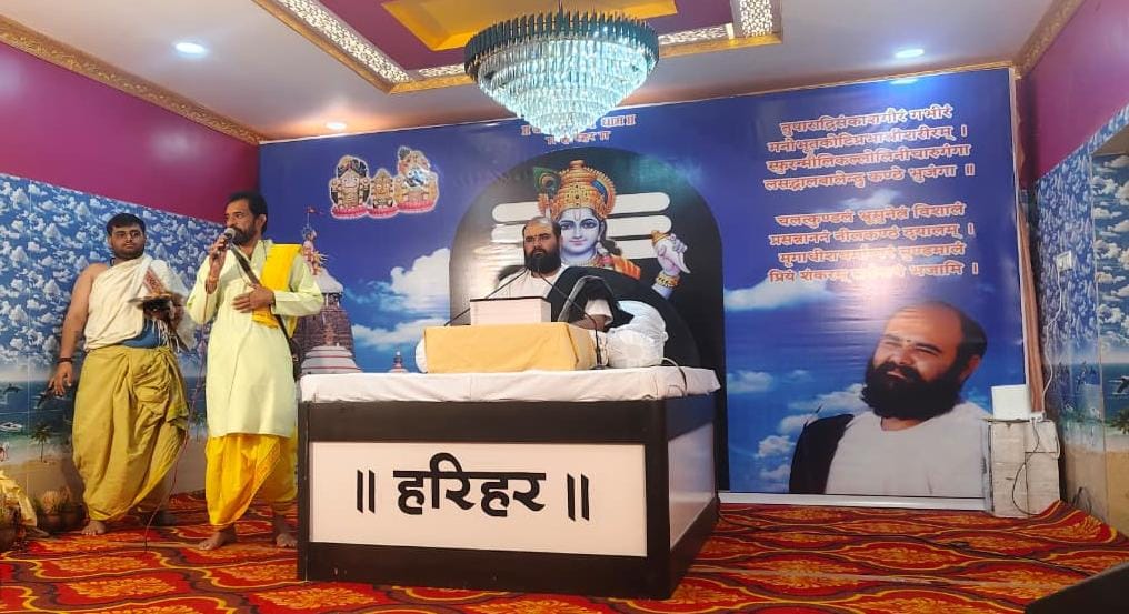 शिव का मूल मंत्र पंचाक्षर है बात अगर सम्मान की एवं धर्म की है वहां कभी नहीं झुकना चाहिए चाहे कुछ भी करना पड़े भगवान को याद जरूर करना चाहिए हम शिव महापुराण के आभारी हैं मनुष्य को अपने जीवन में कभी क्रोध नहीं करना चाहिए क्रोध एवं चिंता करने से मनुष्य का मन अशांत रहता है भोजन भी पवित्र करना चाहिए भोजन अपवित्र हुआ तो मन भी अपवित्र हो जाता है। तृतीय दिवस व्यास पीठ पर पोथी पूजन एवं आरती का लाभ गुजरात भरूच से संजय उपाध्याय परिवार एवं मध्य प्रदेश सारंगी से संजय उपाध्याय ने लाभ लिया एवं व्यास पीठ से गुरुदेव का आशीर्वाद लिया।