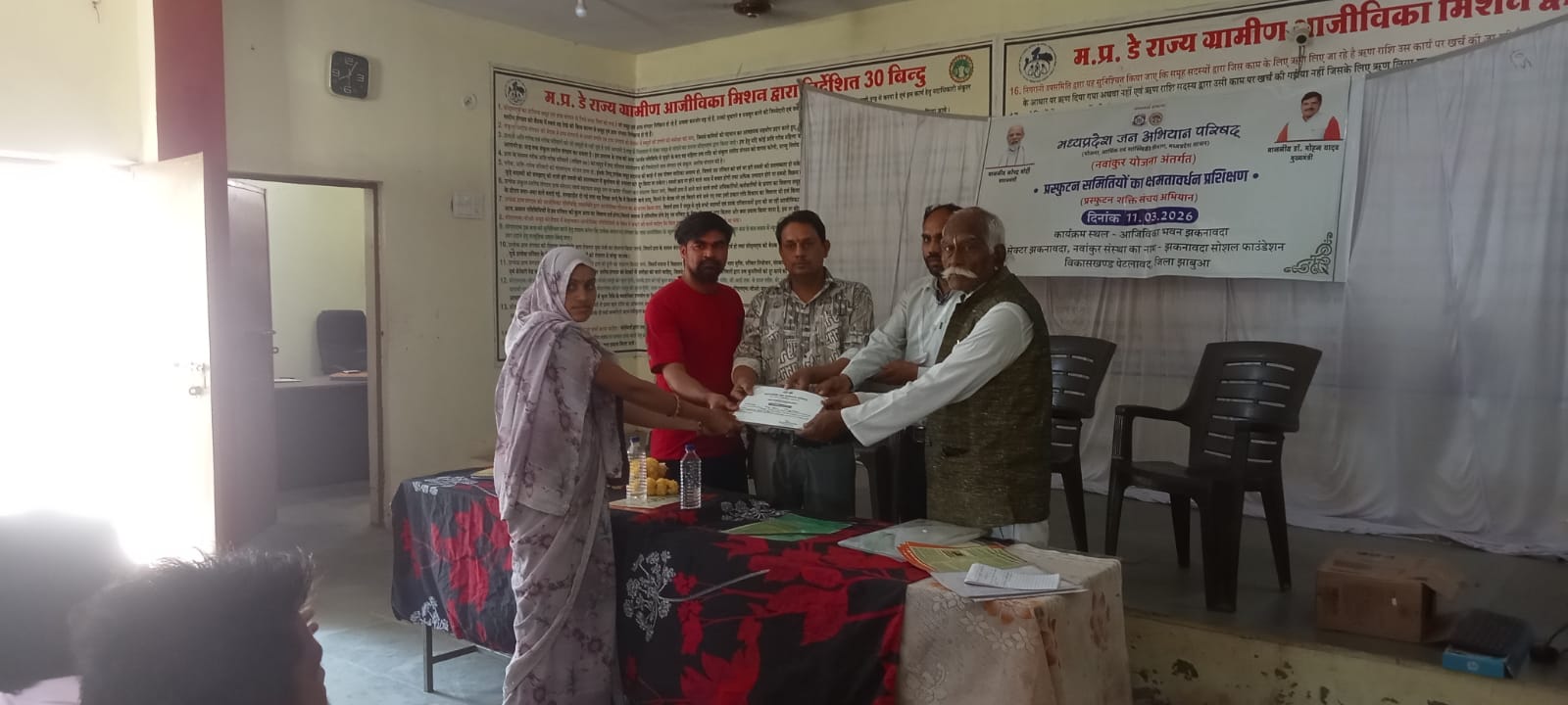 दिनांक 11 मार्च को मध्यप्रदेश जन अभियान परिषद, पेटलावद (जिला-झाबुआ) के मार्गदर्शन में नवांकुर संस्था झकनावदा सोशल फाउंडेशन द्वारा “ग्राम विकास प्रस्फुटन समितियो” का एक दिवसीय बैठक सह प्रशिक्षण कार्यक्रम आजीविका भवन झकनावदा में आयोजित किया गया।