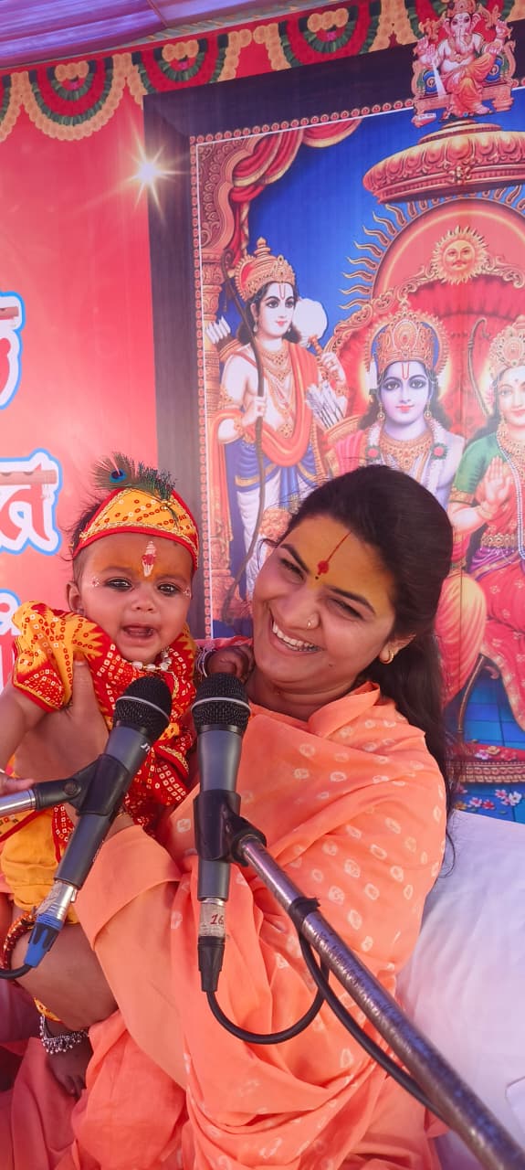 इससे पहले साध्वी जी ने नानी बाई का मायरा की कथा में भक्त नरसी मेहता द्वारा भगवान कृष्ण से मायरा (भात) भरने की मार्मिक प्रार्थना सुनकर श्रद्धालु भावविभोर हो जाते हैं और उनकी आंखों से आंसू बहने लगते हैं। साध्वी जी कहती है कि नरसिंह जी की भक्ति निस्वार्थ भक्ति की पराकाष्ठा है, जिसमें भगवान स्वयं नानी बाई की लाज रखने के लिए प्रकट होते हैं।
