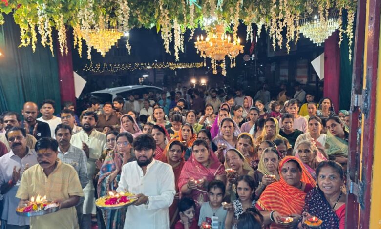 आज साईं मंदिर के गणेश पंडाल में महाआरती के लाभार्थी नगर के समाजसेवी श्री सुरेशचंद्र जैन (पप्पू भैया) बड़े भैया जैकी जैन एवं हरिराम जी गिरधानी, आनंदी जी पडियार, दिनेश जी वैरागी, काकू सेठ, हार्दिक ,पप्पू भैया मित्र मंडल व मनीष जी पंचाल, धर्मेंद्र जी पाटीदार, साईं मित्र मंडल व महिला मंडल एवं समस्त श्रद्धालुओं ने उत्सव में भाग लेकर महाआरती का लाभ लिया साथ ही साथ ही समिति द्वारा श्री जैन को गणराज जी की प्रतिमा भेट कर अतिथियों सम्मान किया गया। गोकुल ग्रुप के राजा बस स्टैंड पर स्थित गणपति जी की महा आरती के लाभार्थी नगर के समस्त पत्रकार साथियों द्वारा आरती की गई। महा आरती में पधारे राजेंद्र सोनगरा अमित भंडारी लोहित झामर निलेश भानपुरिया पंकज बडोला भूपेंद्र बरमंडलीय प्रकाश प्रजापति सहित बड़ी संख्या में पत्रकार एवं श्रद्धालु उपस्थित रहे महा आरती के पश्चात महाप्रसादी का वितरण किया गया एवं संस्था की ओर से सभी पत्रकार साथियों का सम्मान किया।