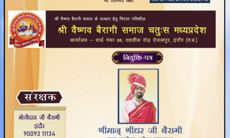 वैष्णव बैरागी चतु संप्रदाय का युवा प्रदेश उपाध्यक्ष बने पं. श्रीधर बैरागी…